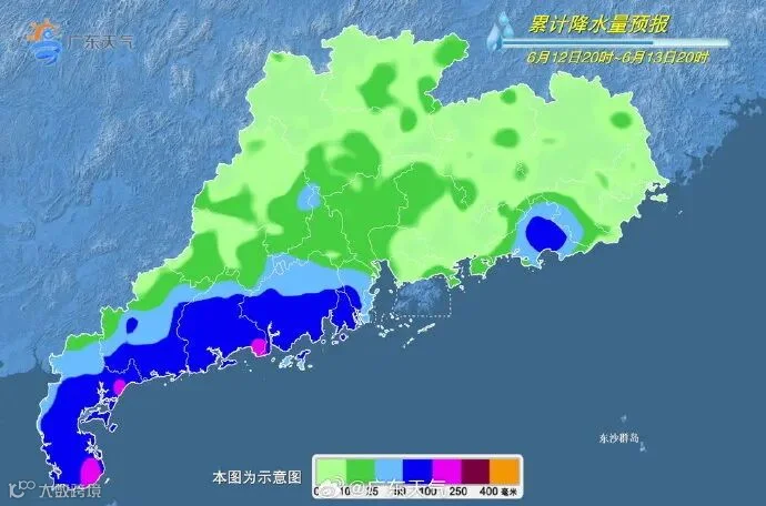 13-15日,受这个未来的台风影响,广东将出现入汛以来最强的降水过程,届时省内大部地区高温趋于缓解。实际上,11日起,南部沿海逐渐受台风外围云系影响,雷雨增多,局部雨势强烈,而粤西北由于受低层弱切变影响,降雨也较明显。