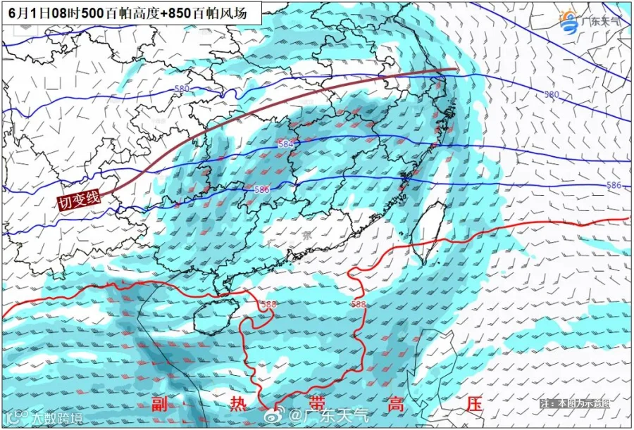 4-5日,受加强的副热带高压控制,广东降雨减弱。