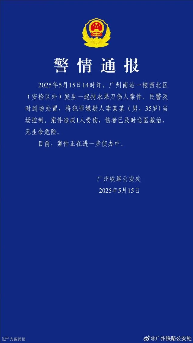 广州南站一男子持刀伤人!警方通报→