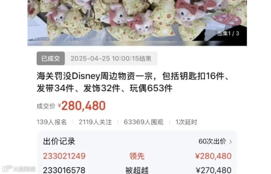 海关罚没700余件迪士尼周边被拍卖,28万成交!网友懵了→