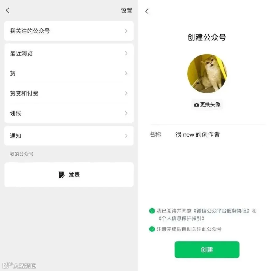 还未有个人公众号的,点击「发表」按钮,填写信息就能快速注册,秒get创作者身份。