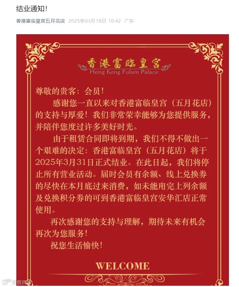 作为承载了食客十年饮食记忆的老牌酒楼,富临皇宫五月花店将要结业的消息一出,令很多熟客感到遗憾和不舍。