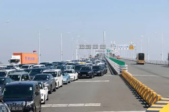 港珠澳大桥桥头等待北上的车辆。新华社/图