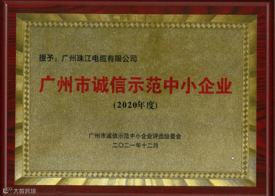 在大会上,广州珠江电缆有限公司凭借多年诚信的经营理念和优质的服务,成功被活动组委会授予“广州市诚信示范中小企业”称号。