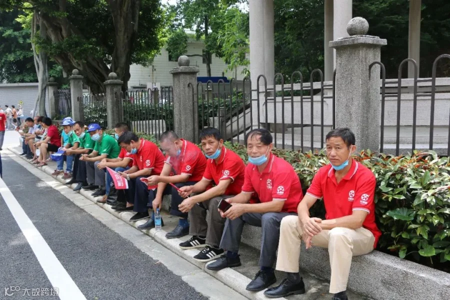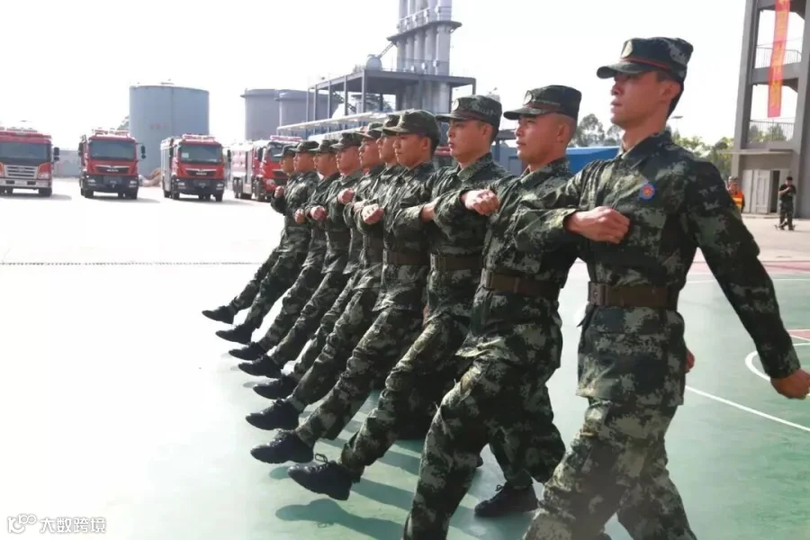 在教练团的带领下,大伙整理队形,以纵队为单位组建团队
