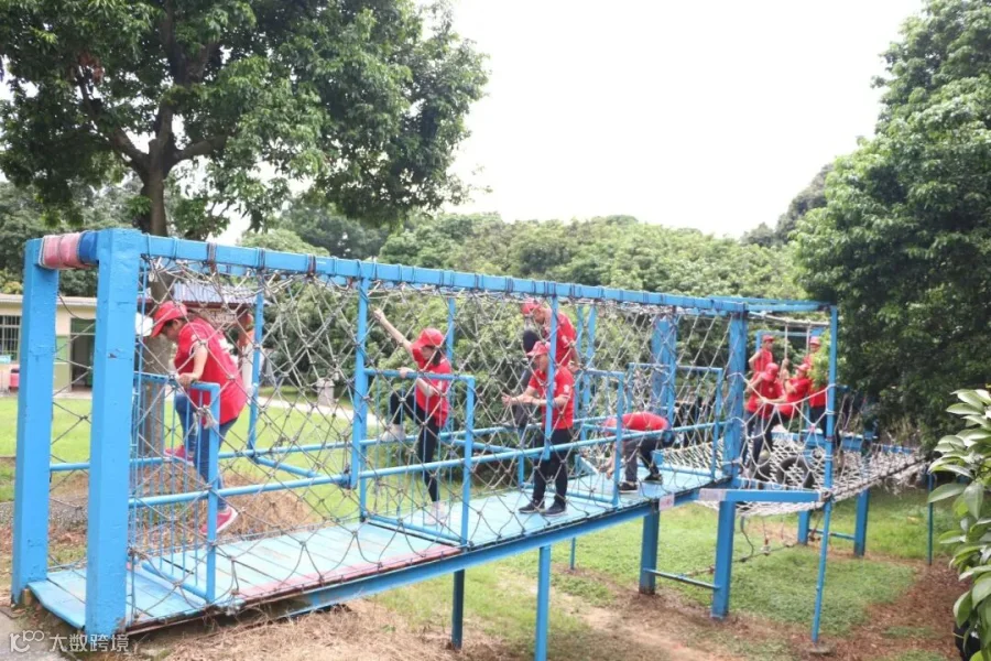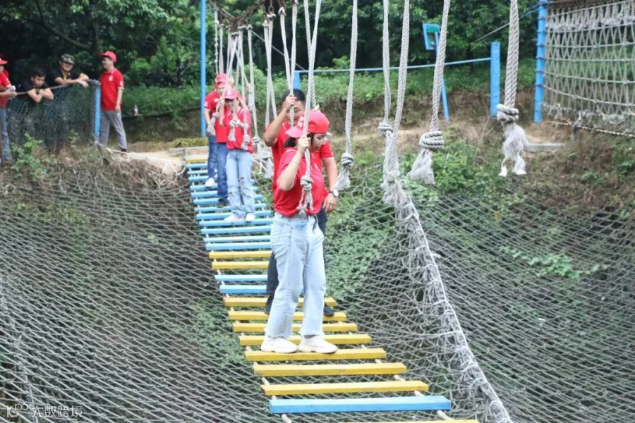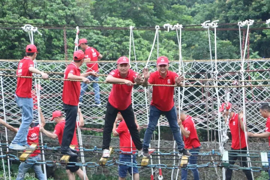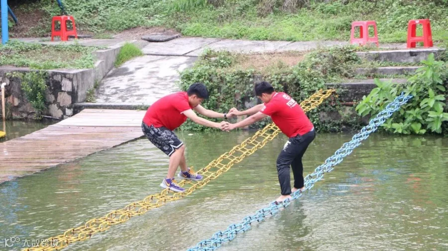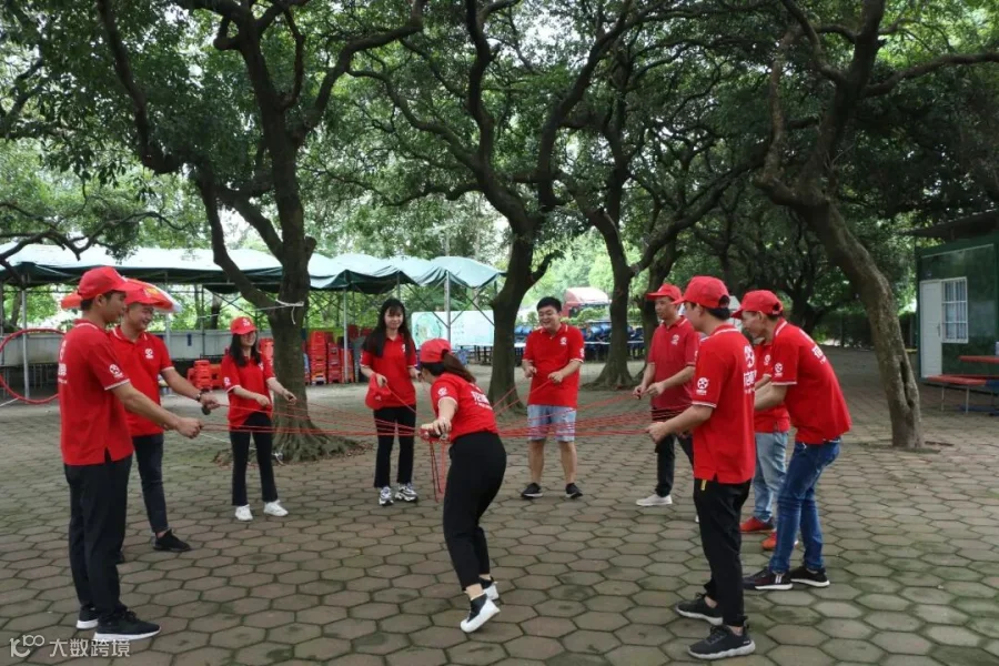 所有人手拉手围成一圈,松开手,每人握住绳子的一部分围成一个圆,双脚合并,用脚后跟着地,所有人同时向后倒,让代表依次在这个绳子上走一圈,提升团队凝聚力、开发团队潜能、塑造个人正向信念、锻造钢铁意志。