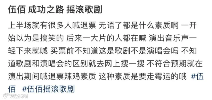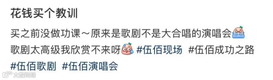 也有人表示是自己在购票前没有看清楚,“买之前没做功课,原来是歌剧,不是大合唱的演唱会。”