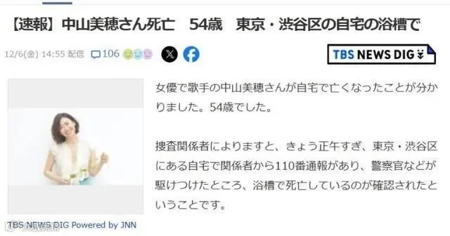 美穗被发现已在自己家中去世,终年54岁。