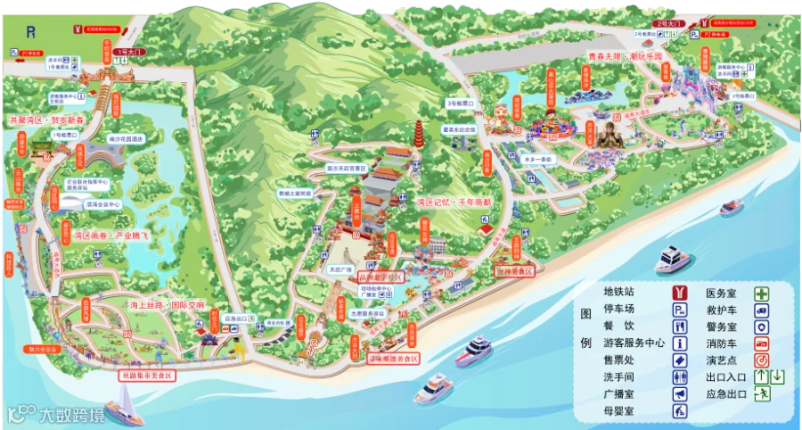 🏠入口(售票口):分别设置在南沙滨海公园西门和蒲洲花园正门。