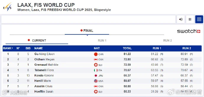 谷爱凌本次受邀出战四项比赛