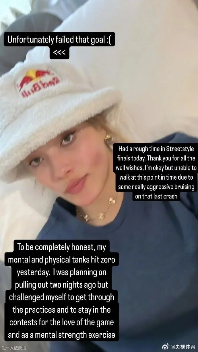 在与发烧缠斗了五天,整夜咳嗽无法入睡,每天滑雪12个小时备战四个不同的项目之后,谷爱凌称自己的身体上实在是吃不消了,“我的神经系统一整周都处于超负荷状态。老实说,我为自己能坚持到现在、没有放弃并且倾尽全力而感到骄傲。我忽视了太多危险信号,现在我的大脑就像在狂欢一样。是时候倾听身体的声音,退一步了。很开心这次摔倒不是特别严重,真的挺幸运。”