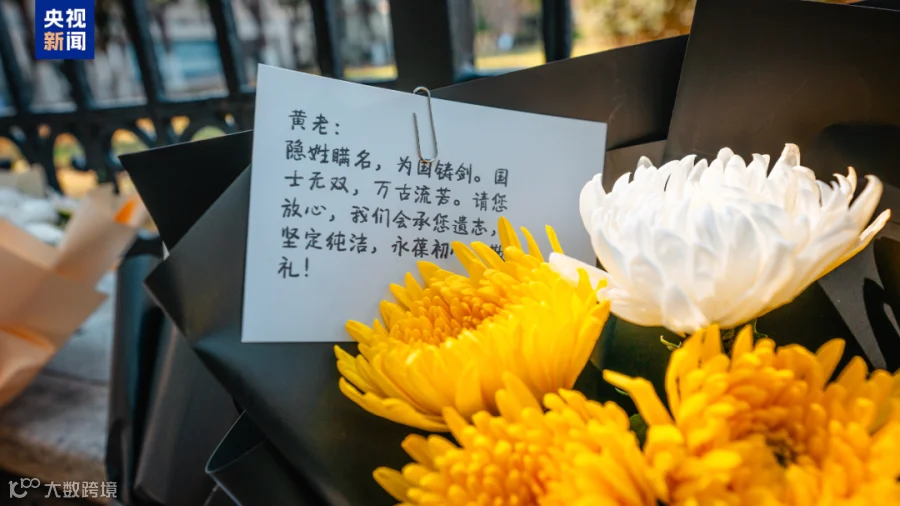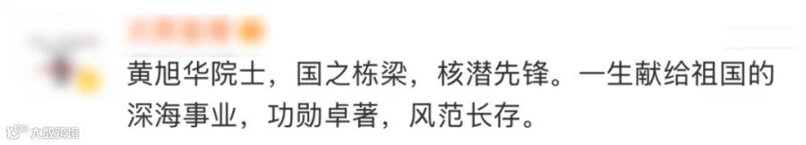 “黄总师一路走好,核潜艇36棵青松敬”