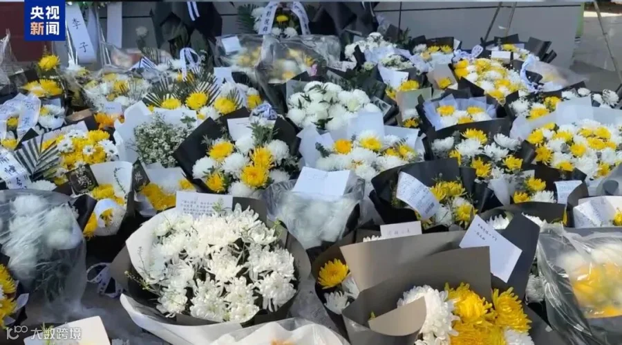 人们鞠躬悼念,献上鲜花