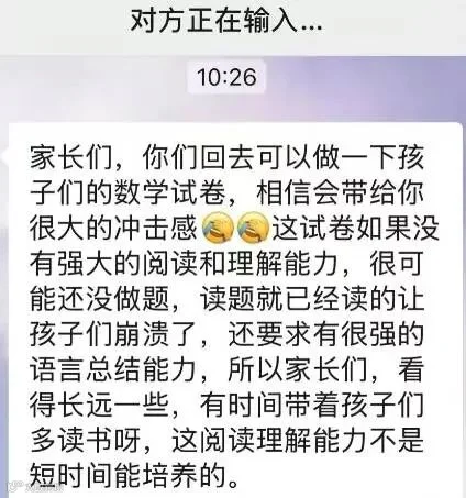 “这是语文老师出的数学试卷吧?句句有主谓宾,段段有原因结果。”