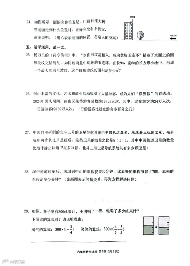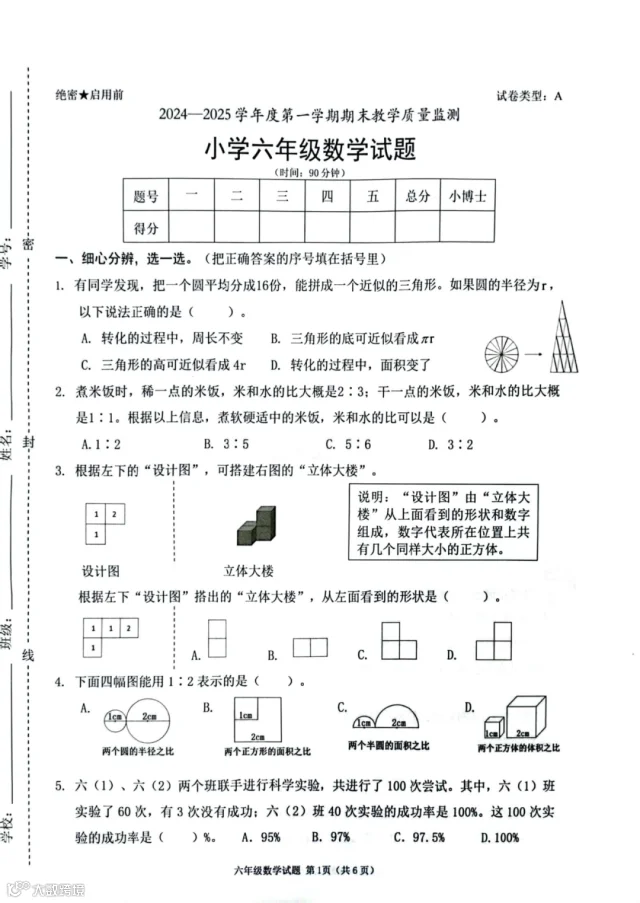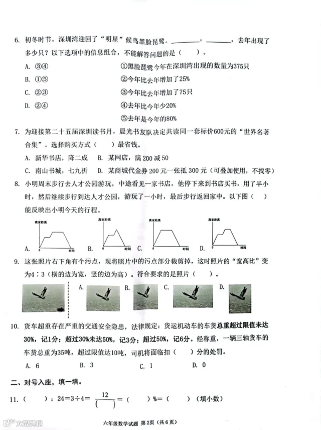 而该试卷选择题第四题显示:“下列成语所描述的事件中,( )发生的可能性最小”,其中共有“海底捞针、瓜熟蒂落、旭日东升、水滴穿石”四个选项。