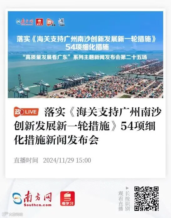 广州海关党委委员、副关长李宇介绍,此次出台的54项细化措施,主要从便利跨境要素流动、打造规则衔接高地、创新海关监管模式及强化科技赋能四个方面入手,全面助力南沙的创新发展。
