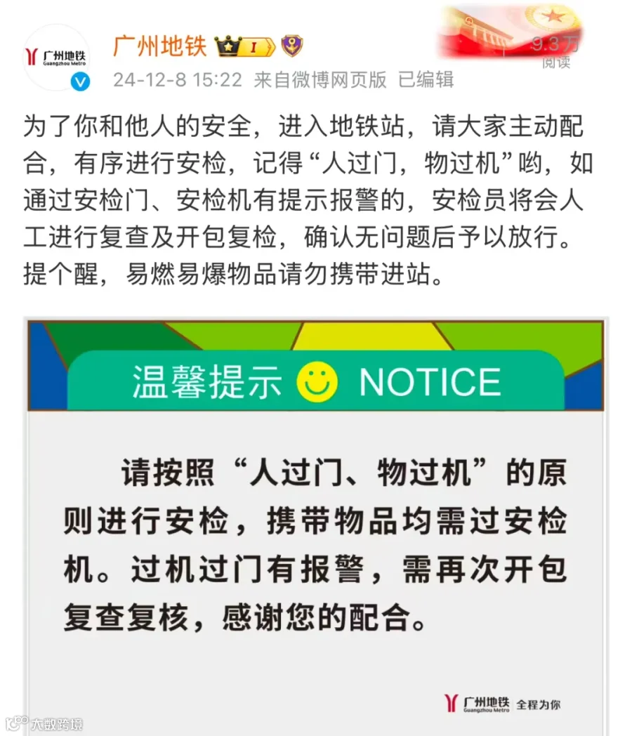 昨天下午(12月8日),@广州地铁 发布两则通知,提醒进站乘客