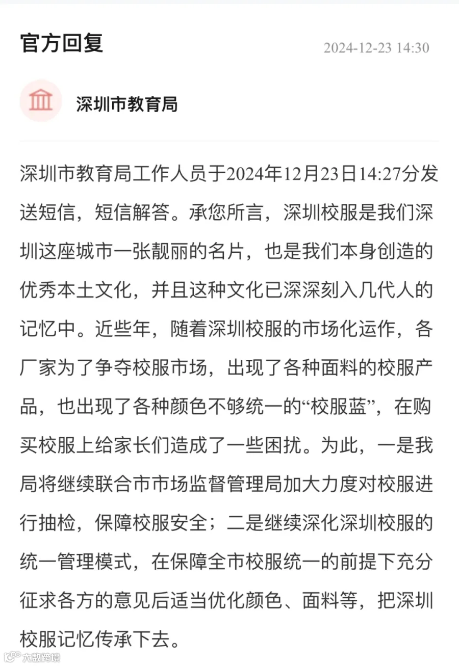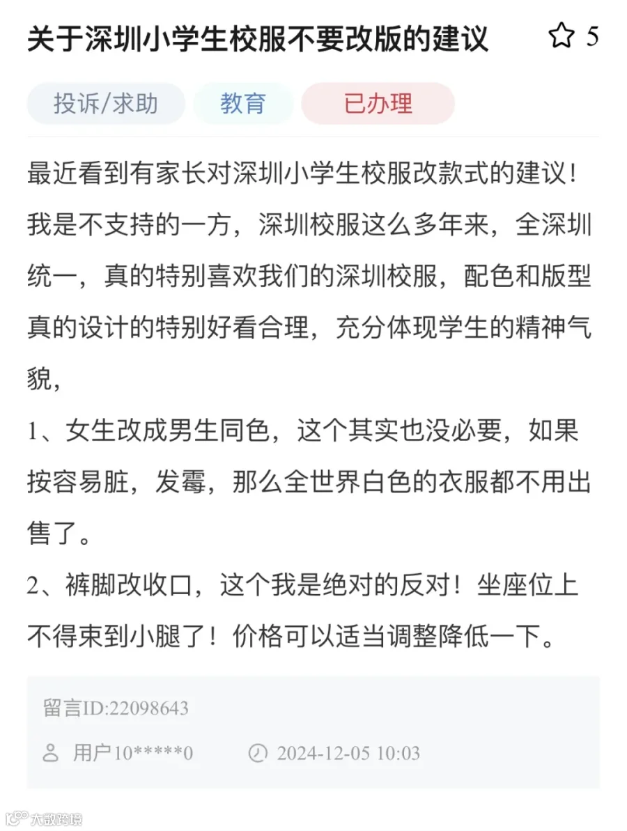 深圳校服要不要改款的话题