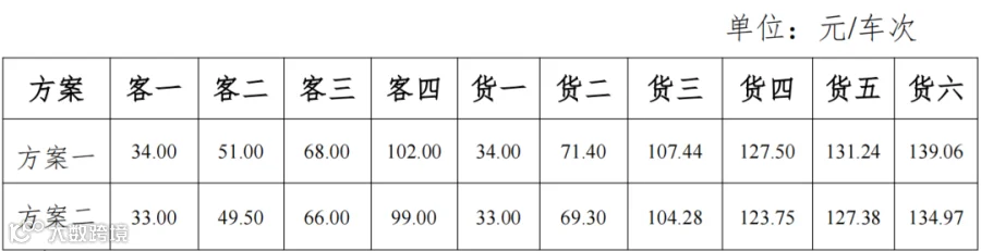 二是按照保障项目可持续运营的基础上降费引流的原则,拟定车辆通行费收费标准为33元/标准车次,执行全省高速公路统一的车型分类方式和收费系数。