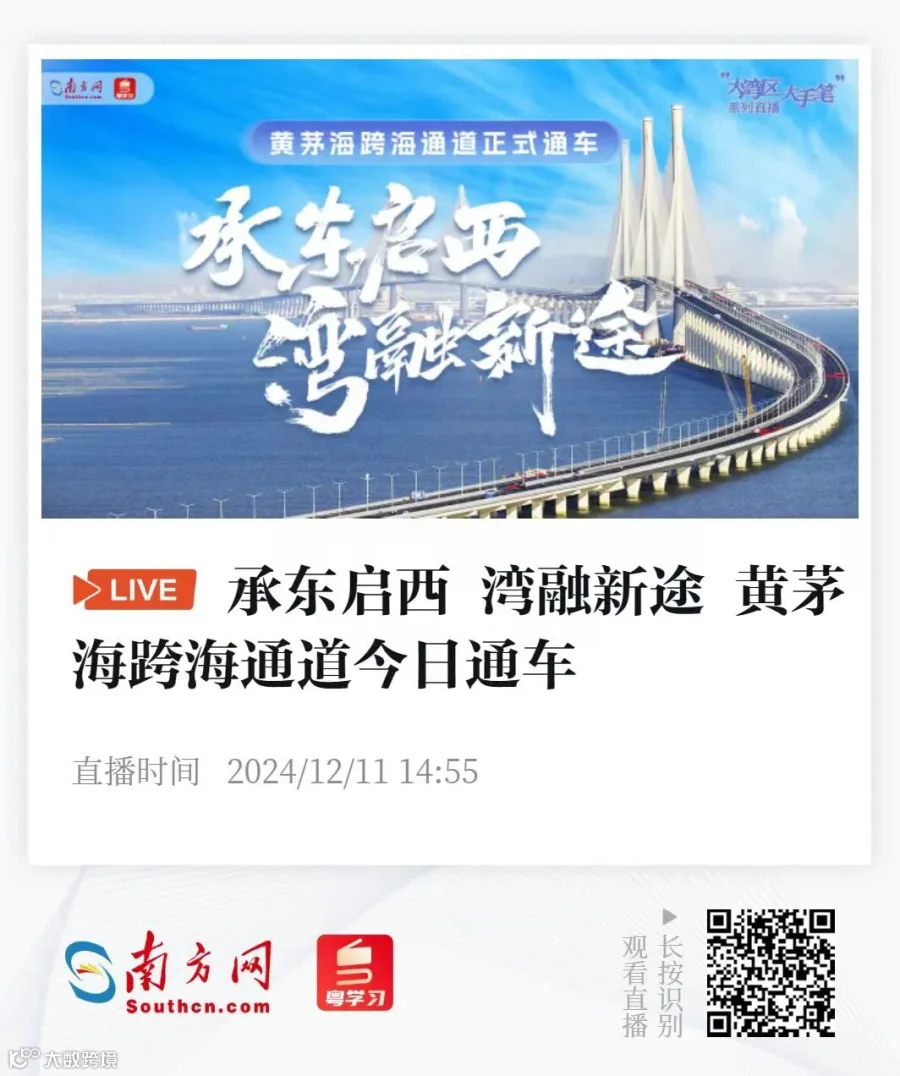——黄茅海跨海通道正式开通试运营。