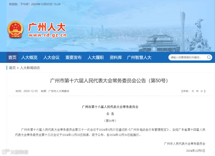 广州市人大常委会公布