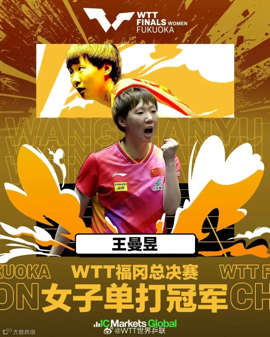 11月24日,在2024年WTT福冈总决赛女单决赛中,国乒选手王曼昱经历七局鏖战,以4-3力克队友陈幸同,首次夺得WTT年终总决赛女单冠军。