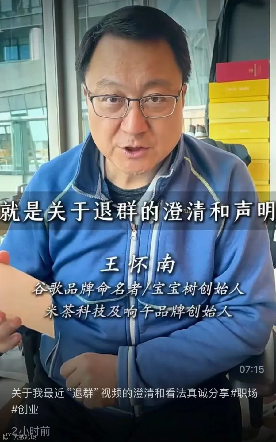 目前王怀南个人账号内已删除该视频。
