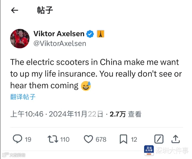 翻译:中国的电动自行车让我想增加我的保险额度,你真的看不到或听不到它们的到来。