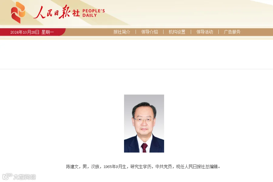 此前担任人民日报社总编辑的于绍良(1964年7月出生,河北赞皇人),已任社长。