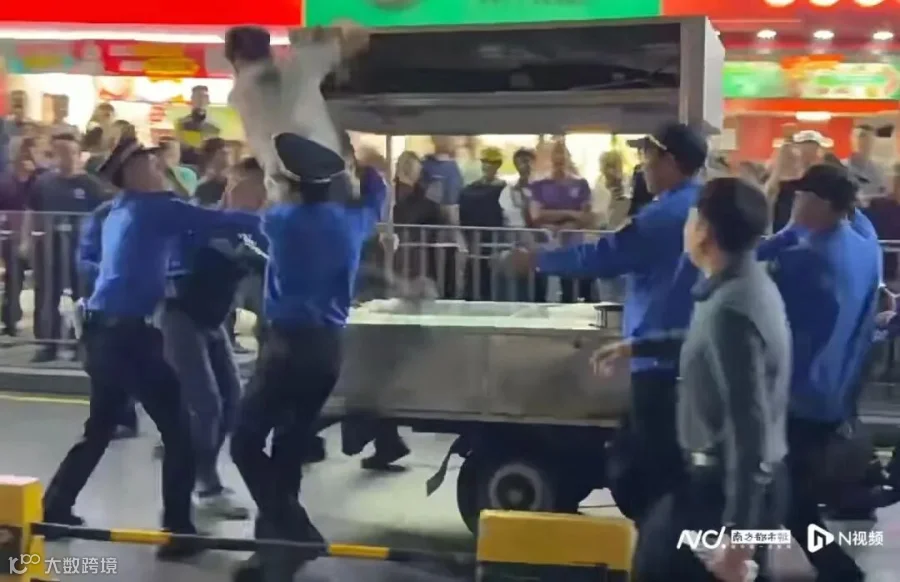 上述网传视频显示,数名执法人员推着摊贩的车辆沿车道离开摆摊现场,并用扩音器对该摊贩进行劝导,现场有大量市民围观。