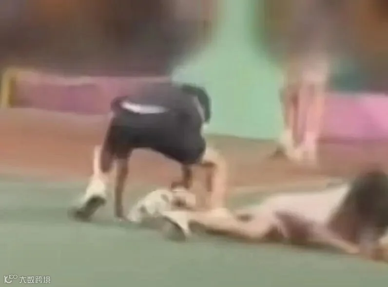 女生被踹倒在地。
