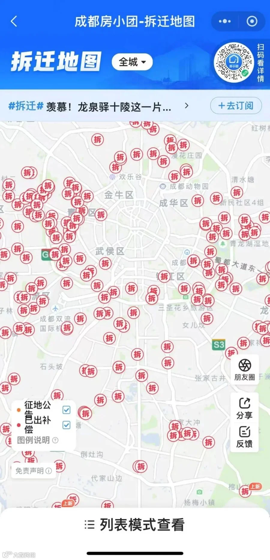 记者查询该图片来源小程序(成都房小团)并对照相关政府官网文件发现,相关拆迁项目存在,但并非网传的近日突然集中爆发,而是一年内或更长时期内陆续产生的。