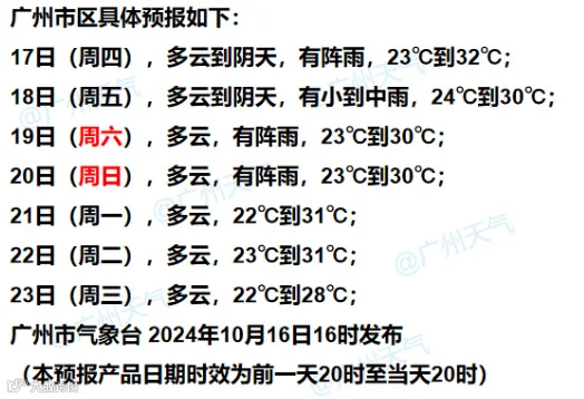 另外,23日起,广州最高气温或跌破30℃。