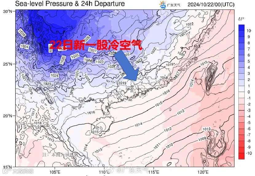 展望22-23日前后,又有新一股弱冷空气南下影响广东,气温小幅下降,降水依旧不明显,大部多云到晴为主,晨晚清凉,昼夜温差大,季节转换期易感冒,要注意适时添衣。