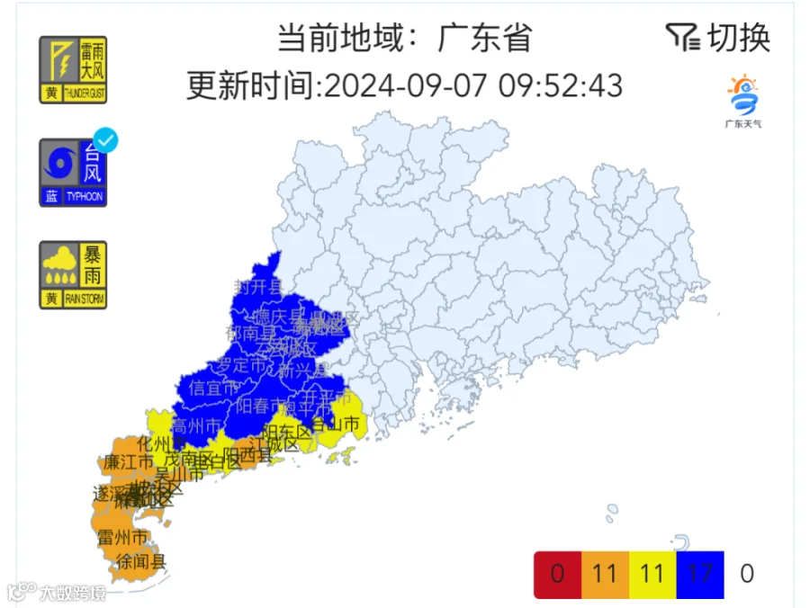 截至9月6日23时,台风“摩羯”已经离开广东。