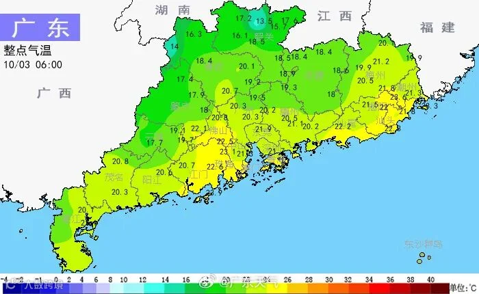 今早,广东气温进一步下降,温差加大,预计,明早广东将迎国庆假期最清凉早晨。