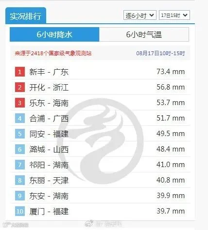 全国降水排行榜上