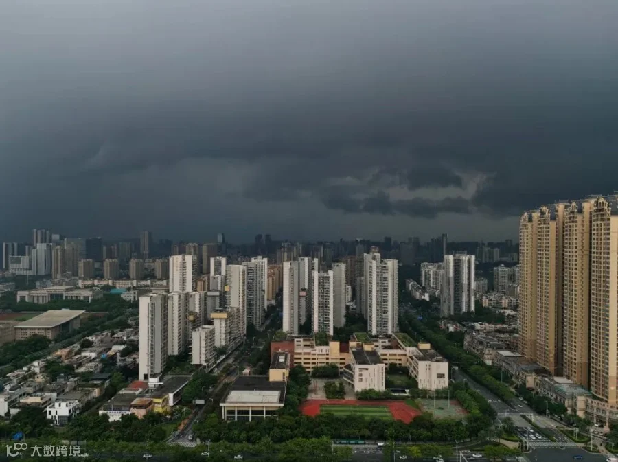 8月17日15时53分,佛山在疾风骤雨中,呈现出“乌天黑地”的景象。