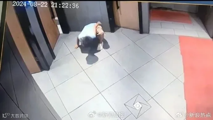 监控视频中,一名10岁左右的男孩在卫生间洗手台附近徘徊,一名女士进入卫生间后,该男孩先是在门外俯身向内观看,随后便跟了进去。之后,男孩在女卫生间隔板下俯身偷窥,被发现后跑出卫生间。