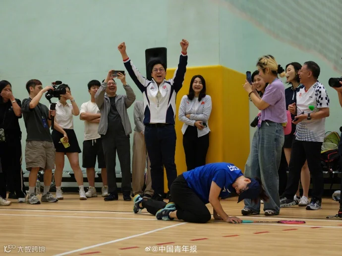 “干饭哥”盛李豪上演打羽毛球名场面