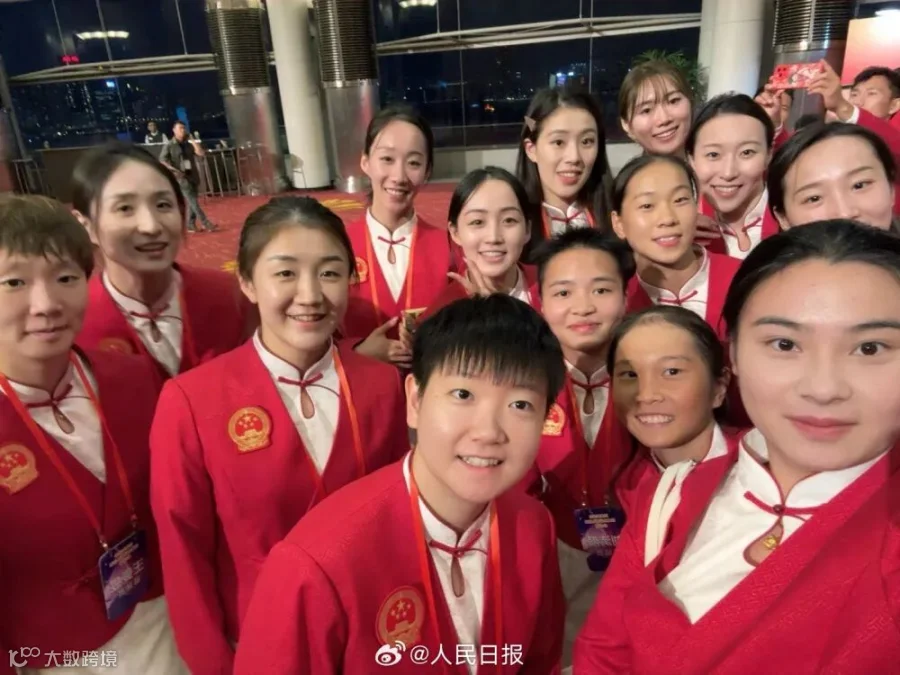 国乒队员现场观战乐到弯腰