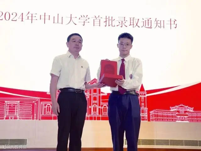 纪中学生李尚儒获得2024年中山大学全国首封录取通知书。