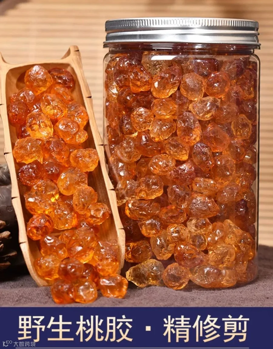 陈红梅说,“桃胶就是一种树胶,它的成分主要是半乳糖、鼠李糖,从成分上来说,对于糖尿病有一定好处。”
