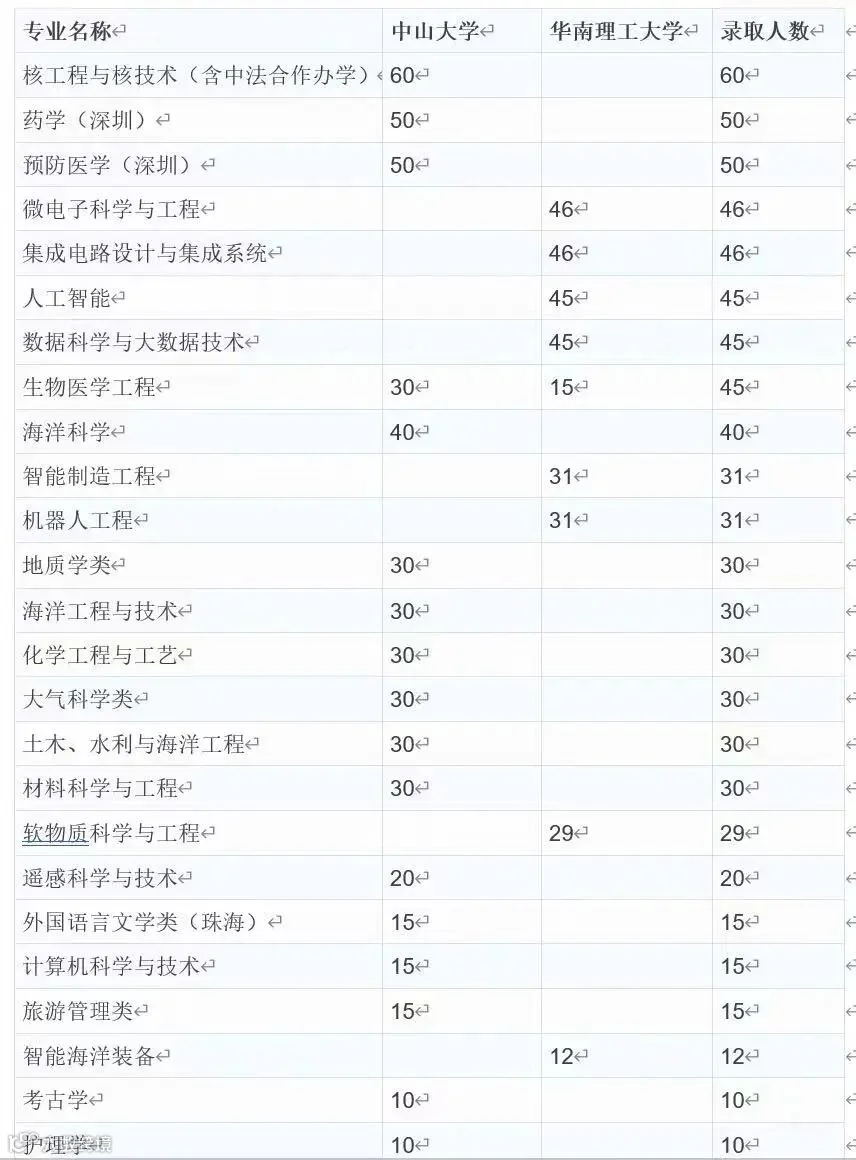 从专业来看,中山大学共有17个专业录取495人,华南理工大学有9个专业录取300人。