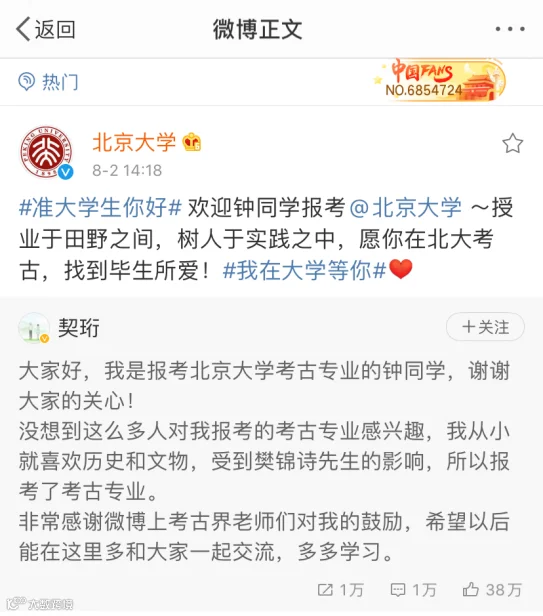 她最终决定报考北大考古学专业。