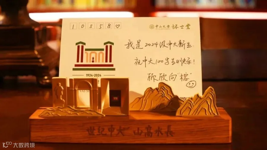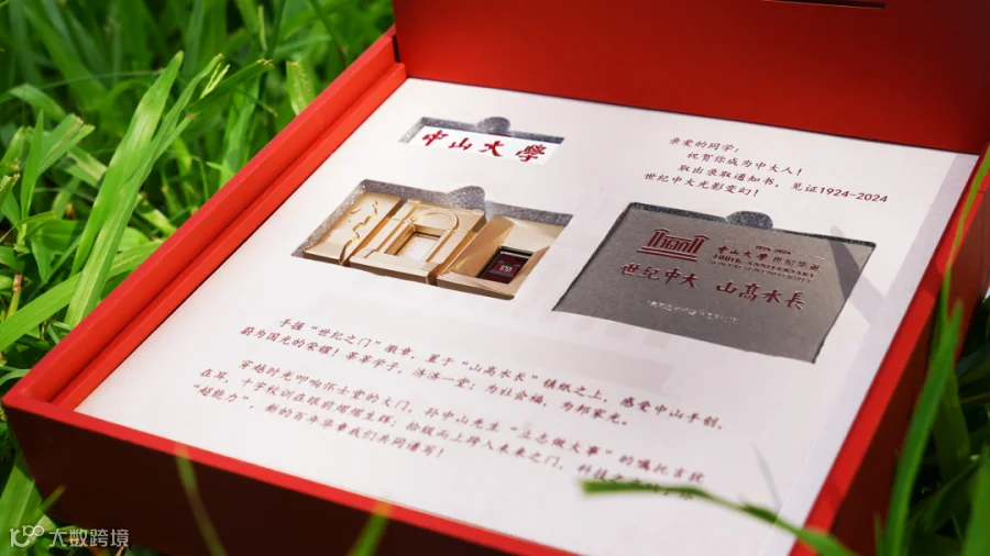 “世纪中大,山高水长”的烫金字样