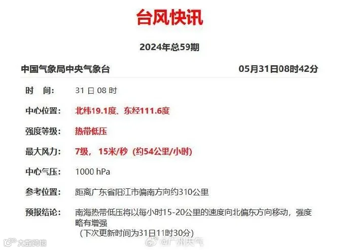 预计受热带低压影响