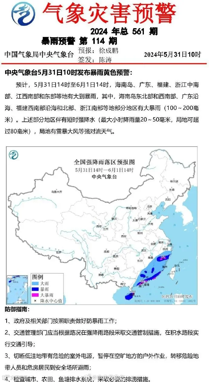 注意防风防雨防地质灾害