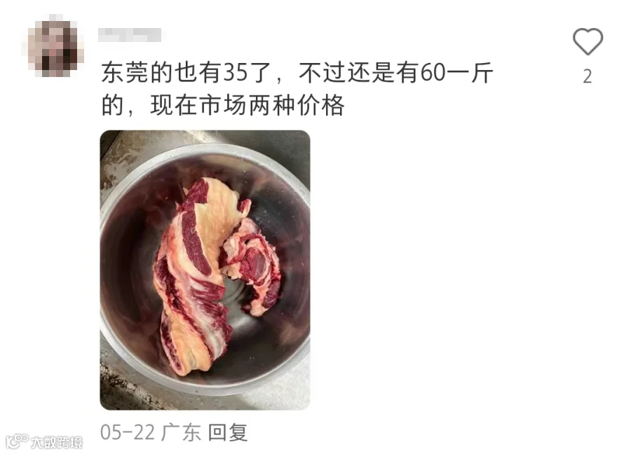 而在线上买菜平台,进口冷冻的牛肉、牛腱子的售价更低。记者查询了最新牛肉价格走势,当前,国内牛羊肉产量保持增长,国外进口量继续增加,消费处于淡季,价格持续小幅下跌中。