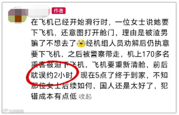 飞机滑出后,一名女子疑因情感问题